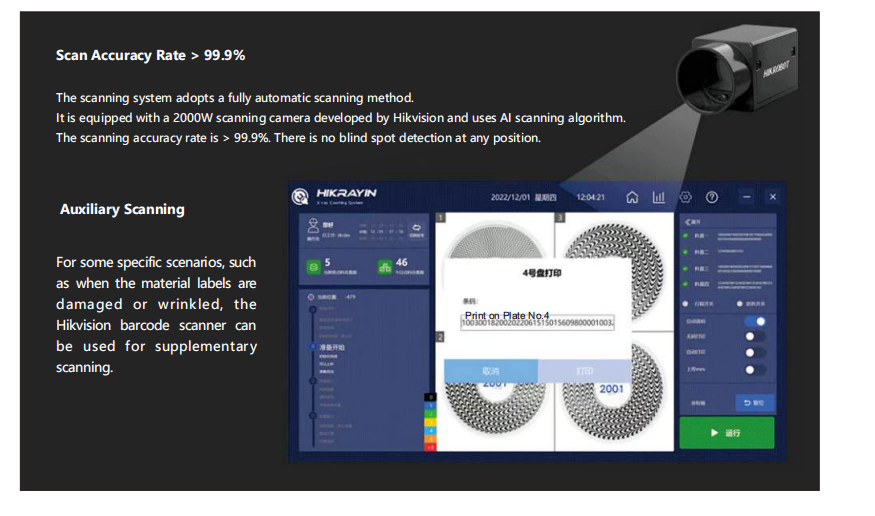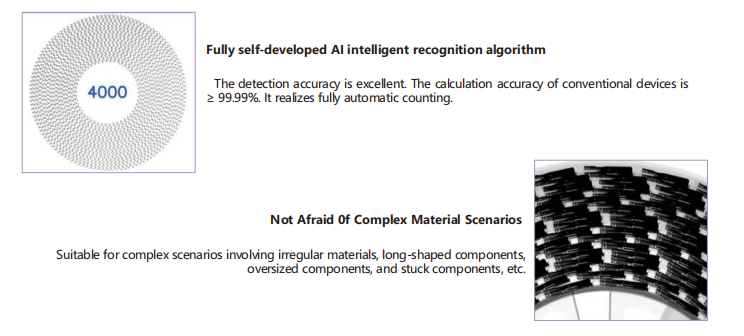 Na podlagi algoritma za inteligentno prepoznavanje je natančnost zaznavanja odlična. Natančnost izračuna s konvencionalnimi napravami presega 99,99 %, kar omogoča popolnoma avtomatsko štetje. Branje kod uporablja visokoločljivostno kamero Hikvision in samodevlopljen inteligentni algoritem, pri čemer natančnost doseže do 99,9 %. Hitrost zaznavanja je visoka, najhitrejša hitrost pa lahko znaša do 8 s.